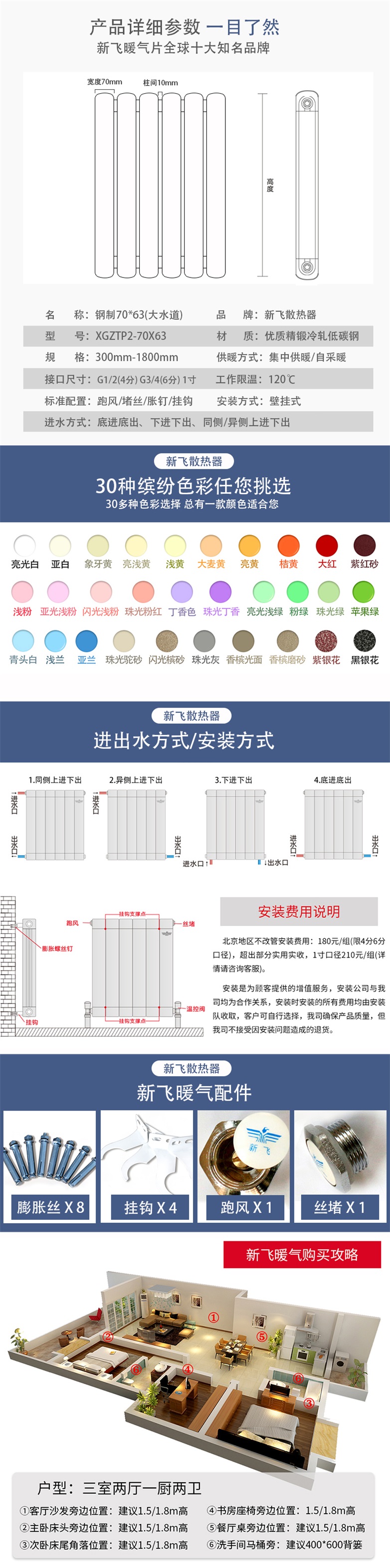 新飛鋼制暖氣片 70x63型號