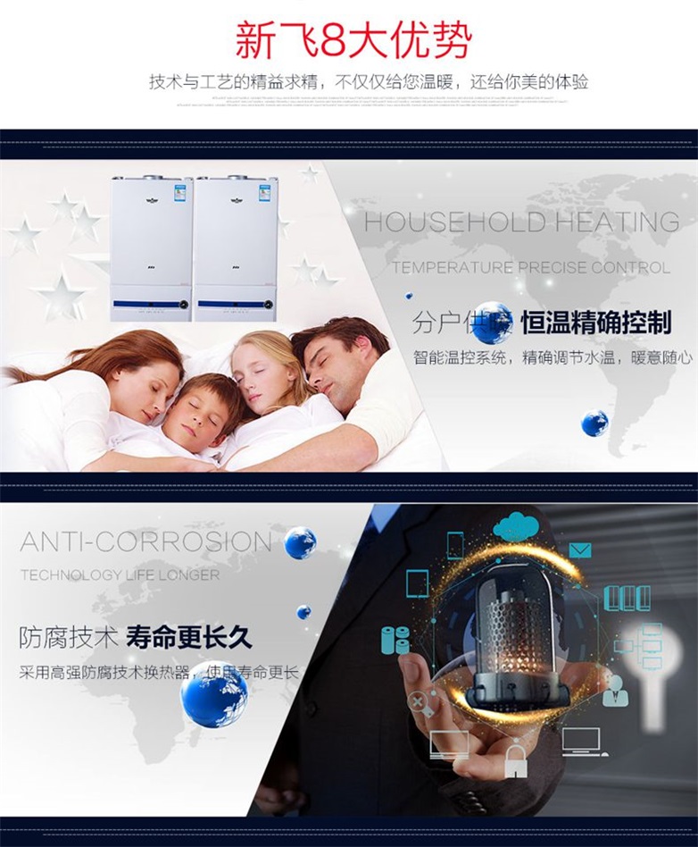 它其實(shí)相當(dāng)于一個(gè)小型的鍋爐,這我們采暖與生活熱供熱水的,它有內(nèi)、外兩套水循環(huán)系統(tǒng),外系統(tǒng)是由燃燒室對(duì)其直接加熱,屬于高溫區(qū),所以為我們提供采暖用水,一般設(shè)計(jì)定在六十度左右,看用的是地暖管還是暖氣片了,暖氣片高一點(diǎn)而地暖要低一點(diǎn);而生活用水是內(nèi)系統(tǒng),是由采暖水熱交換所得,所以溫度會(huì)低一些,也正好是我們洗漱所需的溫度;
