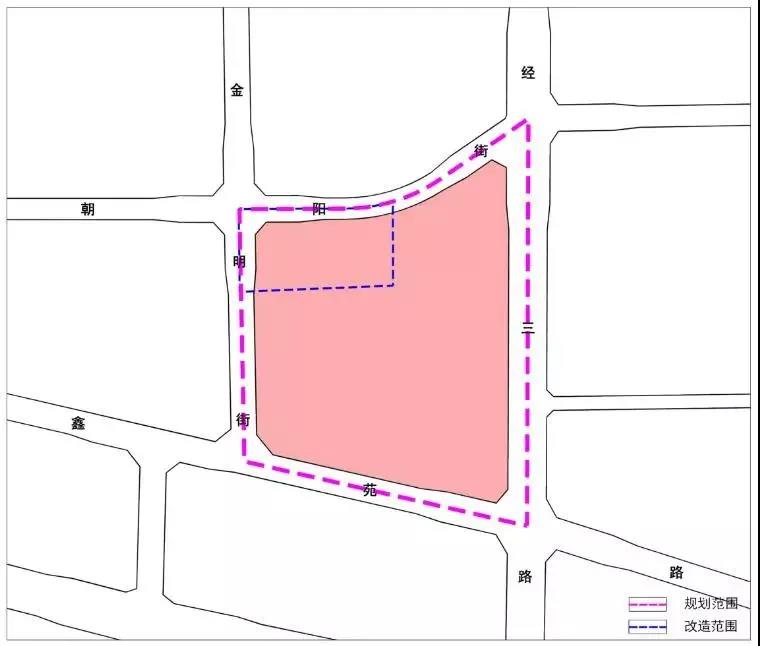 黃家庵村規(guī)劃用地范圍是金明街、朝陽街、經(jīng)三路、鑫苑路四條道路所圍合的街坊區(qū)域。